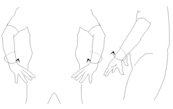 D-Cổ tay hơi có gốc độ, tức bàn tay hơi nâng lên đồng thời cổ tay để một chút lực xoắn như hình cuối.