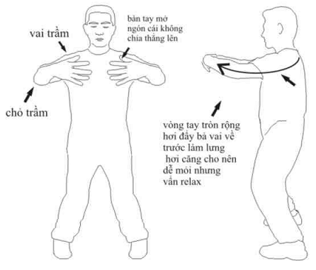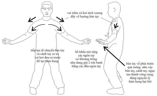 B-Vai trầm và hơi đưa ra trước thì như vậy ngực hàm hung và buông xã (K). Hơi tách khớp xương tay và vai, khi làm đúng thì